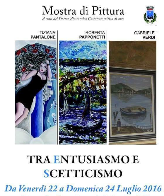 La mostra a cura del Dottor Alessandro Costanza critico d'arte, vedrà tre protagonisti di questa prestigiosa location: Tiziana Pantalone, Roberta Papponetti e Gabriele Verdi.