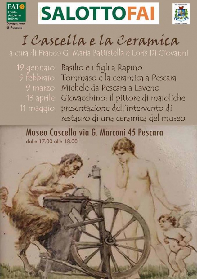 Giovedì 19 gennaio alle ore 17.00, nel Museo Cascella in Via Marconi 45 a Pescara, si terrà il primo dei quattro appuntamenti del ciclo "I Cascella e la ceramica" organizzato dalla Delegazione FAI di Pescara.