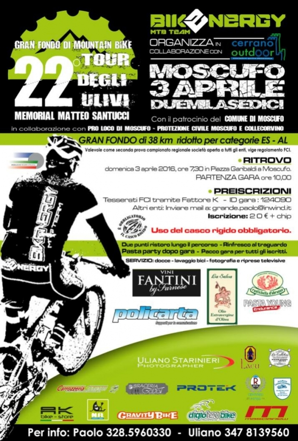 La gara, di 38km con percorso ridotto per le categorie ES - AL, è organizzata dalla BikeEnergy MTB Team in collaborazione con Cerrano Outdoor, Pro Loco di Moscufo, Protezione Civile di Moscufo e Collecorvino e il patrocinio del Comune di Moscufo, Ã¨ valevole come seconda prova del campionato regionale e prevede l'uso obbligatorio del casco rigido.