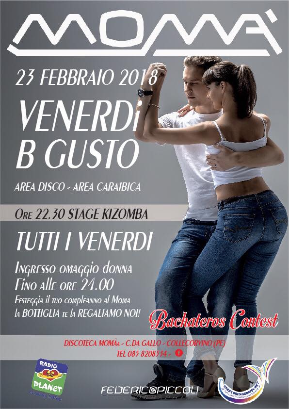 Torna questa serà , venerdì 23 febbraio l'appuntamento con la musica latina e i balli caraibici alla discoteca MOMA' di Collecorvino.