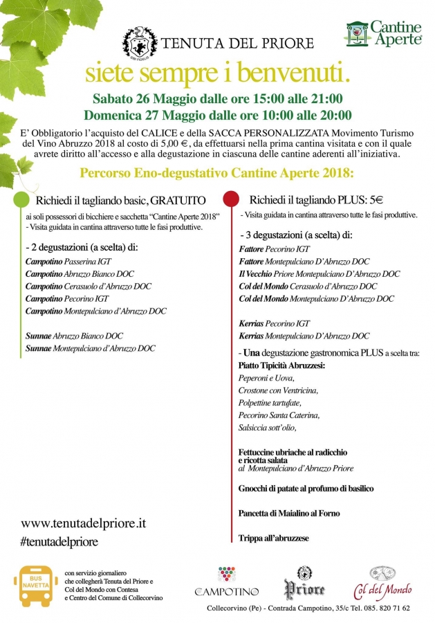 Collecorvino- anche in quest’edizione la Tenuta del Priore aderisce a Cantine Aperte.