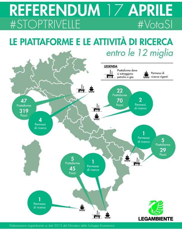 "Il governo, con un emendamento alla legge di Stabilità 2016 (che modifica il decreto legislativo 152/2006) ha vietato tutte le nuove attività entro le 12 miglia marine, ma ha mantenuto i titoli già rilasciati prevedendo che essi possano rimanere vigenti “fino a vita utile del giacimento.