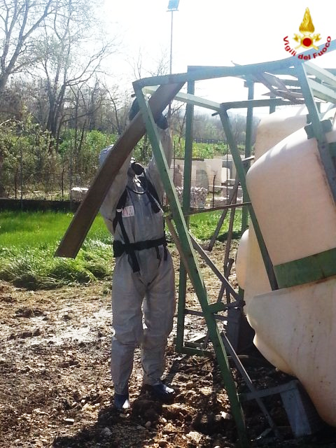 Sono intervenute Squadre dei Vigili del Fuoco del Comando di Pescara con specializzazione NBCR in via della Bonifica 34 a Cepagatti per sversamento di acido cloridrico in soluzione inseguito ad un furto di automezzi avvenuto nella notte tra venerdi e sabato.