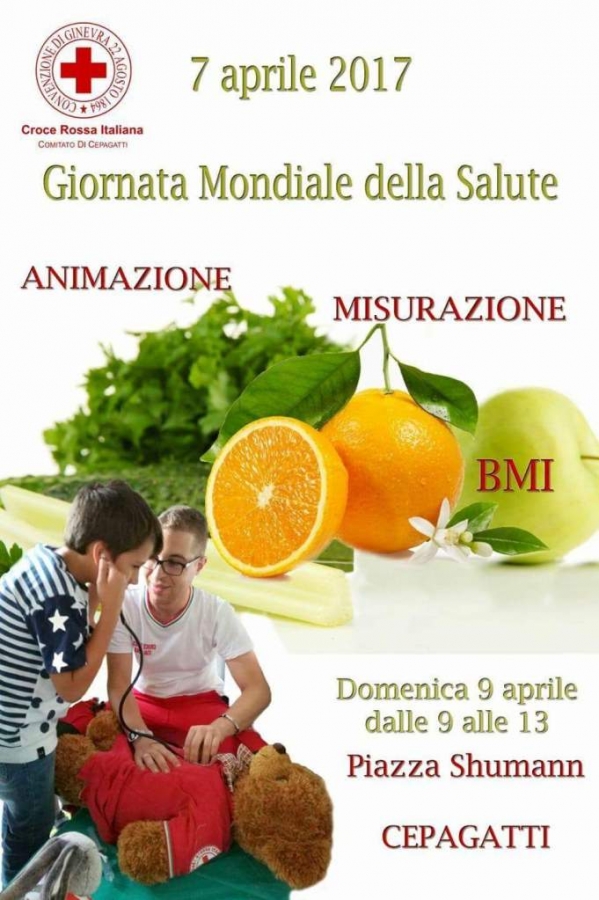 In occasione della Giornata Mondiale della Salute, la Croce Rossa di Cepagatti attende gli interessati a Cepagatti domenica 9 Aprile in piazza Schuman dalle 09:00 alle 13:00.