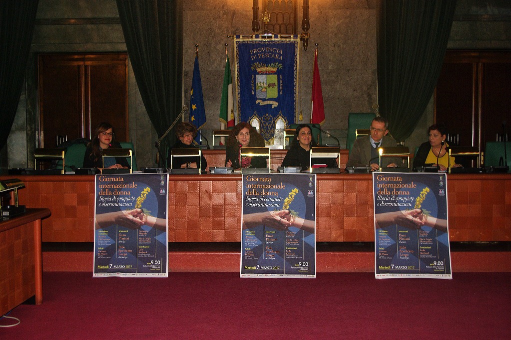 “Giornata internazionale della donna: storia di conquiste e discriminazioni” è questo il titolo del convegno promosso dalla Commissione Pari Opportunità della Provincia di Pescara che si è svolto ieri presso la sala dei Marmi del Palazzo della Provincia per ricordare l’8 marzo. Presenti oltre alla Presidente, Romina Di Costanzo, lo storico Enzo Fimiani, la sociologa Eide Spedicato Iengo, la consigliera provinciale Leila Kechoud, la Presidente dell’UDI Pescara Francesca Magliulo e la commissaria Maria Luigia Montopolino.