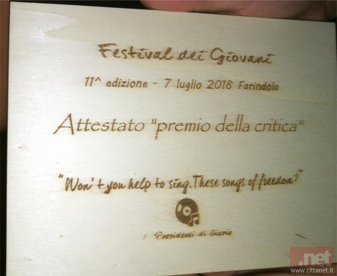 Hanno conquistato il premio della critica consegnatogli dal vincitore del programma televisivo X-Factor del 2015, il cantautore Gio’ Sada ospite della manifestazione che tra l’altro si è esibito proponendo i brani che fanno parte della propria tournée.