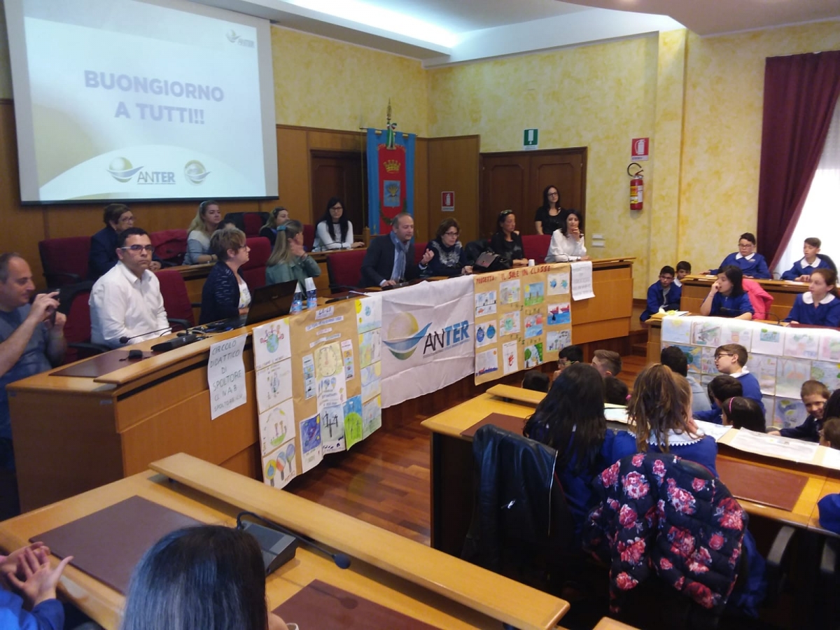 Ha coinvolto centinaia di bambini il progetto educativo dell'Anter: "Il sole in classe e in città " ha creato un percorso ludico didattico che si è concluso nella sala consiliare del Comune, addobbata con i cartelloni colorati e disegnati dalle classi delle scuole primarie di Spoltore. L'Associazione Nazionale Tutela Energie Rinnovabili ha scelto i più piccini perché rappresentano "le generazioni future, i semi da cui nasceranno gli alberi e le piante del domani". A salutare i ragazzi c'era anche il sindaco Luciano Di Lorito, che ha parlato dei progetti comunali per tutelare l'ambiente, dall'illuminazione a led alla nuova raccolta porta a porta che sarà presentata domani (24 maggio 2019) in Comune alle 10 e partirà il primo giugno. Presenti il vice sindaco Chiara Trulli, l'assessore all'istruzione Roberta Rullo. Sono intervenuti i delegati Anter Loredana D'Onofrio e Ivo Trisi.