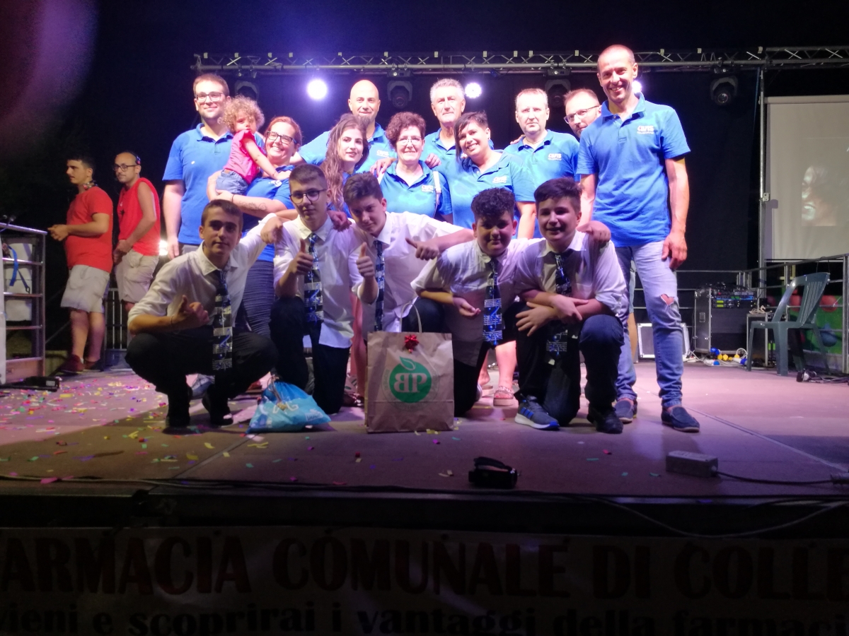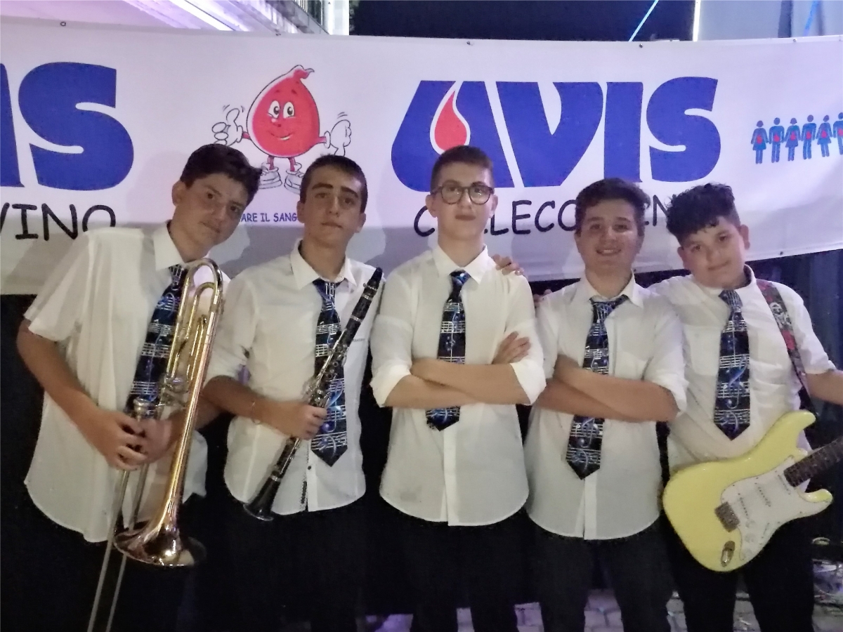 Un gruppo musicale composto da Patrizio Scardetta (tromba), Tommaso Di Silvestro (chitarra elettrica), Luca Colangeli (Batteria), Lorenzo Leone (clarinetto), Francesco Evangelista (trombone), tutti adolescenti di età compresa tra i 12 e i 14 anni che, nato nelle file dell’Orchestra Musicale della scuola media di Collecorvino, ha deciso di intraprendere un percorso autonomo creando un proprio genere musicale facendo riferimento a pezzi degli anni 70/80, colonne sonore e pezzi di fama internazionale. Oltre allo studio musicale curano anche coreografie e animazione proponendo entusiasmanti performance come quella di ieri sera che li ha visti impegnati un medley del pezzo “Nel blu dipinto di blu” in versione romantica e sdolcinata ed un vivace ed energico “Tu vuò fà l’americano” conquistandosi anche l’approvazione del pubblico. La band, tra l’altro, da oltre un anno si sta mettendo in evidenza sempre più e comincia a destare l’interesse di esperti nel settore per le capacità e padronanza del palcoscenico che li ha portato a partecipare e vincere vari concorsi e manifestazioni.