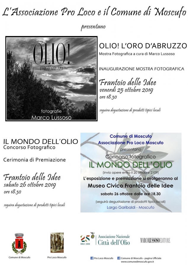 - venerdì 25 ottobre ore 18.30 : Inaugurazione Mostra Fotografica OLIO! L’ORO D’ABRUZZO a cura di Marco Lussoso, seguirà degustazione di prodotti tipici;