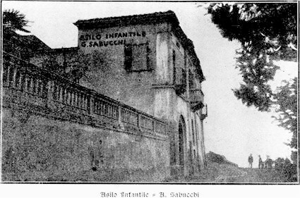 - L'asilo infantile "A. Sabucchi" fu istituito nell'anno 1928 anche se già funzionante dal 1927. Lo statuto fu deliberato dal consiglio d'amministrazione nella seduta del 13 luglio 1928 ed approvato con r.d. 11 ottobre 1928, n. 2587; con lo stesso decreto l'asilo fu riconosciuto ente morale. La direzione era affidata alle suore "Figlie della Divina Provvidenza"; la sede era in via Umberto I, in un palazzo acquistato da Giacomo Sabucchi e donato all'asilo da sua moglie, marchesa Erminia Sabucchi de' Felici, in memoria del figlio Antonio.