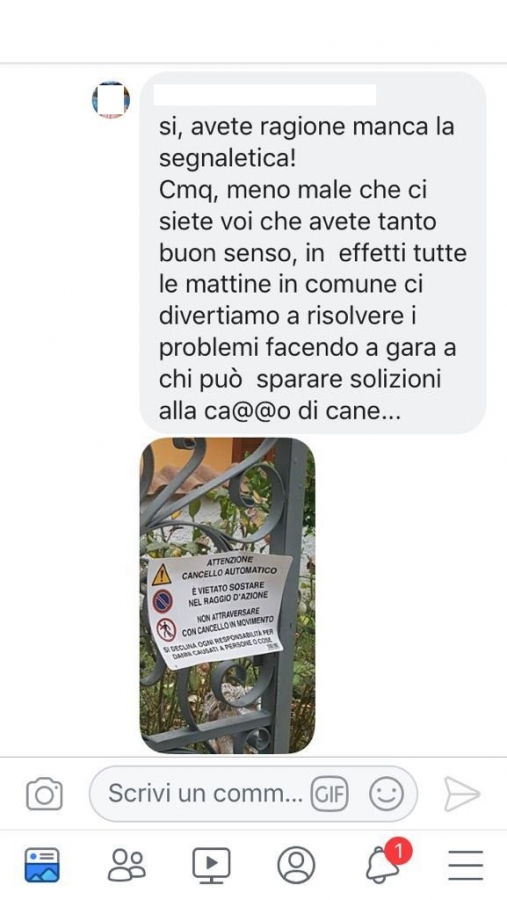 Se alle suddette (e condivisibili) buone prassi vogliamo fare riferimento, e se sono tanto importanti da divenire oggetto di integrazione al codice di comportamento del Comune, ci chiediamo allora come mai non sia considerato un dovere per i membri della Giunta, attuare lo stesso comportamento verso la cittadinanza tutta, a prescindere dalla propria linea politica e dalle divergenze di opinioni. E ci chiediamo ancor più, come il Sindaco, a cui a quanto pare preme sottolineare l’importanza dell’educazione, chiuda un occhio di fronte alle frasi sconvenienti e volgari pronunciate da uno dei suoi assessori su FB, mezzo virtuale frequentato perfino dai bambini della nostra comunità, fingendo di dimenticare che l’amministratore dovrebbe essere un punto di riferimento di buona condotta per questi ultimi e per la cittadinanza in generale.