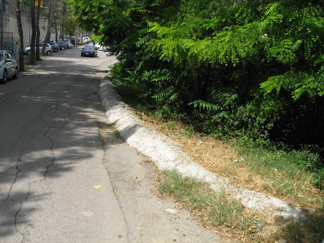 9. Cordolo di cemento al ciglio della carreggiata, pericoloso e tecnicamente inspiegabile.