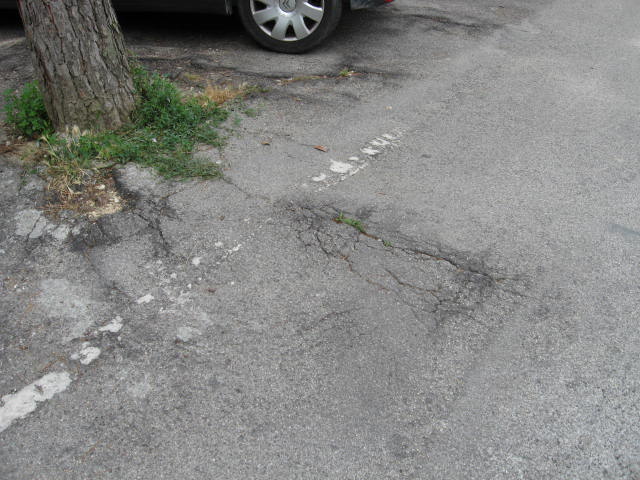 14. Manto stradale dei parcheggi molto deteriorato.