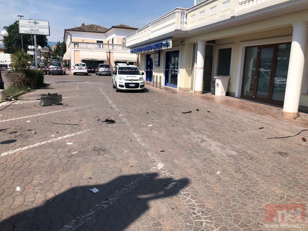 Nella notte dei malviventi hanno fatto esplodere il bancomat della filiale Caripe di Collecorvino. Si è udito a km di distanza il forte boato causato dall'esplosione. Il tutto è accaduto intorno alla 3.10 del mattino, di oggi 15 luglio. L'impatto ha causato incenti danni anche agli interni della filiale.