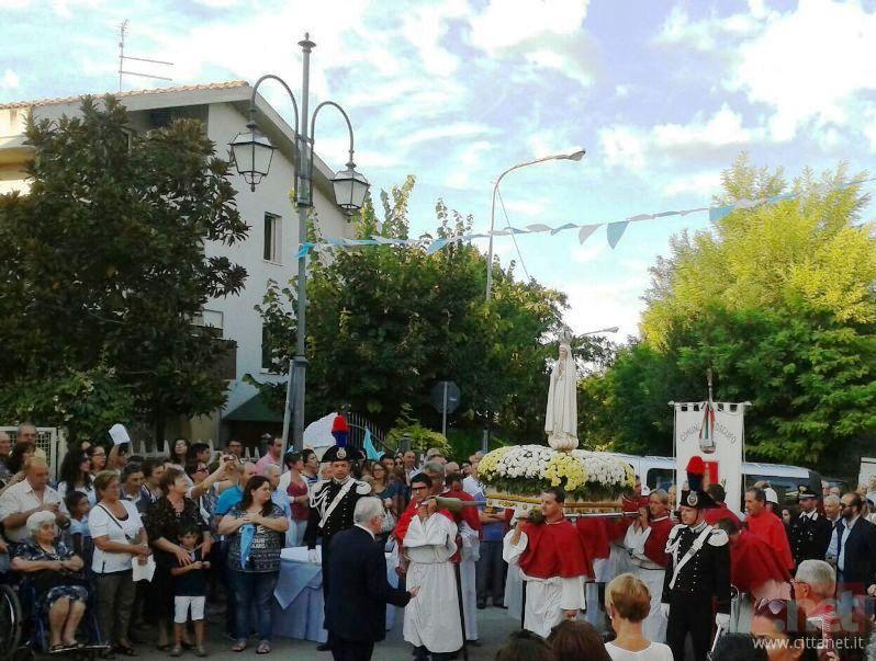 Centinaia di fedeli hanno accolto ieri, domenica 4 settembre, l’arrivo a Moscufo della statua della Madonna di Fatima. Dopo l'accoglienza della Madonna Pellegrina, c'è stata l'incoronazione oltre al saluto delle autorità ; da qui poi è stata portata in processione verso la chiesa parrocchiale dove ha avuto luogo la celebrazione eucaristica presieduta da Don Fulvio Di Fulvio.