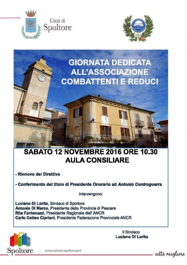 Nel corso della cerimonia, verrà conferito il titolo di Presidente Onorario ad Antonio Controguerra, il più anziano combattente di Spoltore e in passato Presidente sia della Sezione locale che della Federazione provinciale dell’ANCR. Domani festeggerà anche il suo 95esimo compleanno.
