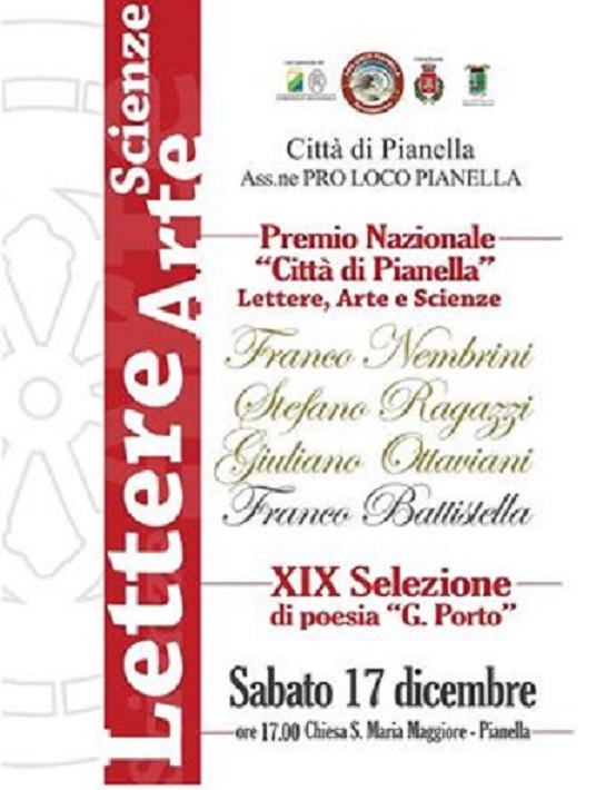 Anche quest'anno a Pianella, grazie alla Pro Loco, si rinnova il tradizionale appuntamento culturale che vede insieme protagonisti la selezione di  Poesia “Giuseppe Porto" ed il Premio Nazionale di Lettere, Arte e Scienze “Città di Pianella”.