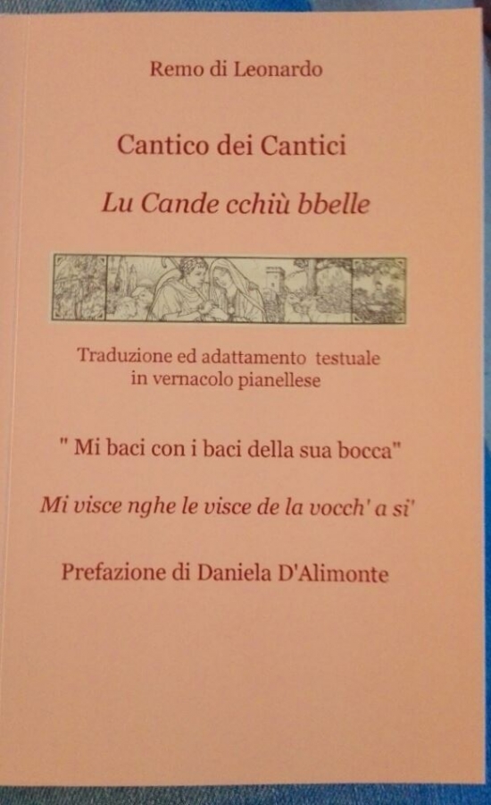 Da pochi mesi, per i tipi di Rotmail Italia S.p.A. (Gruppo Editoriale L’Espresso “ILMIOLIBRO”),è uscita l’ultima fatica letteraria, già in seconda edizione, del poeta e scrittore dialettale, nonché appassionato ricercatore di tradizioni popolari, Remo di Leonardo. Si tratta della traduzione ed adattamento testuale, in vernacolo pianellese, del poema biblico “Il Cantico dei Cantici” Lu Cande cchiù bbelle, con prefazione di Daniela D’Alimonte, docente di lettere, giornalista pubblicista, studiosa della lingua italiana e del dialetto.