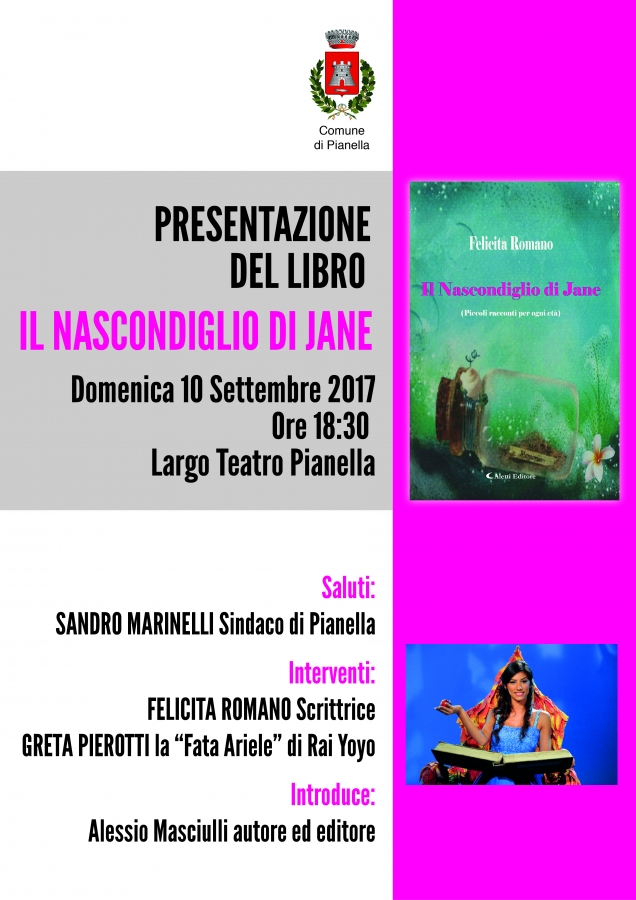 Interverrà anche Greta Pierotti, la “Fata Ariele” di Rai Yoyo canale tv per ragazzi, alla presentazione del libro “Il Nascondiglio di Jane”, della pianellese Felicita Romano. L’evento si terrà domenica 10 settembre, alle ore 18:30, presso Largo Teatro che si appresta ad ospitare l’ennesimo evento di una estate ricchissima di manifestazioni.