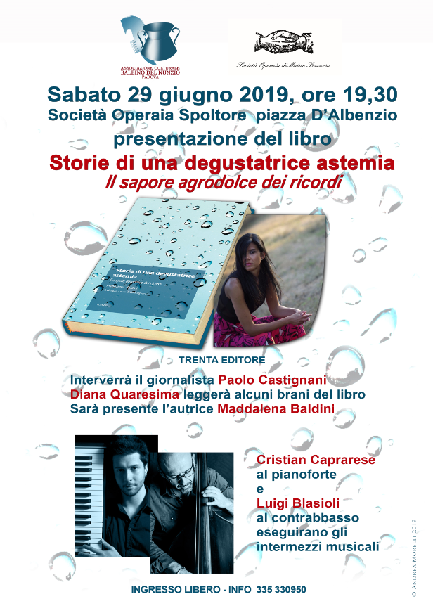 L'opera sarà presentata con la partecipazione dell'autrice, a cura dell'Associazione Culturale Abruzzese-Veneta "Balbino Del Nunzio", Sabato 29 Giugno 2019, alle ore 19.30, negli spazi della sede SOMS di Spoltore, in piazza Giuseppe D’Albenzio, messi a disposizione dalla Società Operaia di Mutuo Soccorso, che ha attivamente collaborato all'organizzazione dell'evento.