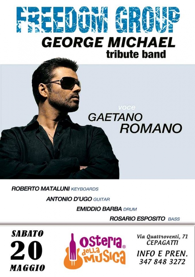 Osteria della Musica presenta Freedom Group George Michael tribute band, sabato 20 maggio 2017 ore 21,00 Osteria della Musica, Cepagatti (Pe) tutte le info dell'evento sulla pagina Fb oppure ai numeri 085/9749809-347/8483272