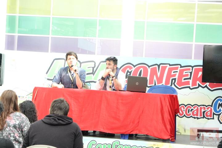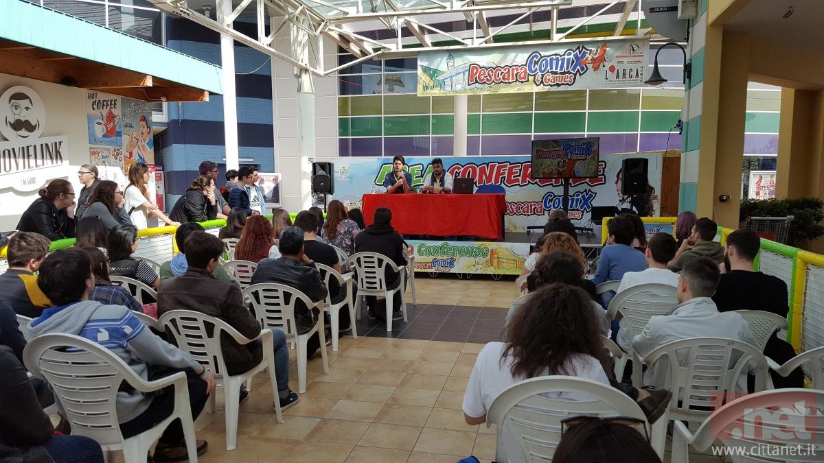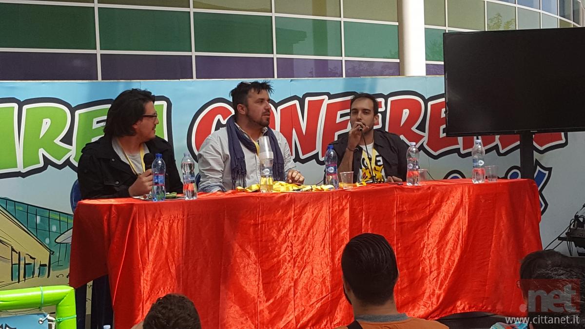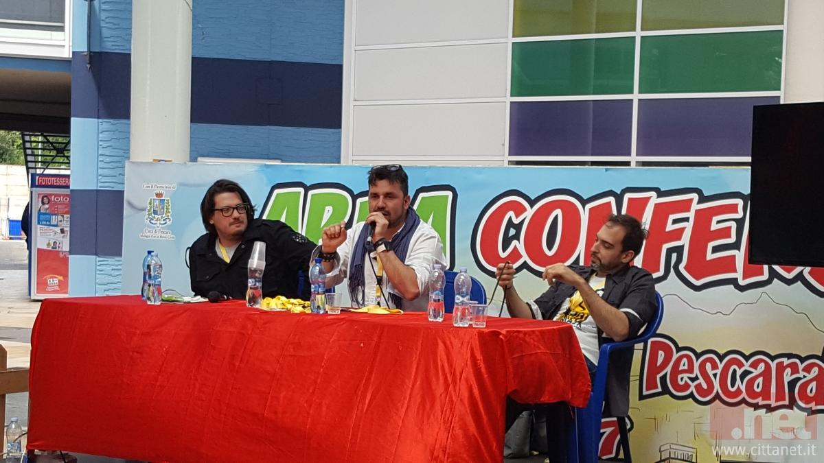 Fantastica performance dei tre famosi opinionisti Dellimellow, Pino CuozzoPaolo Cellammare che hanno aperto con un'appassionante conferenza la due giorni del Pescara Comix & Games.