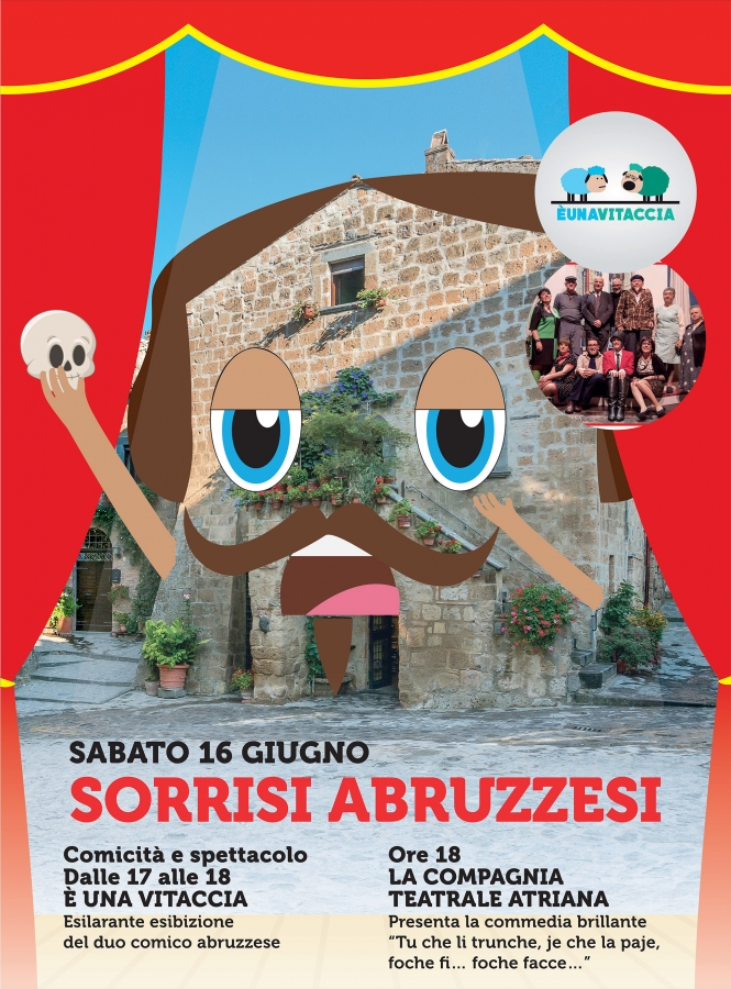 Alle 18,00 sarà di scena la Compagnia Teatrale Atriana con  "Tu che li trunche, je che la paje, foche fi.... foche facce" commedia brillante in due atti di Giancarlo Verdecchia. La Compagnia Atriana è una compagine ormai molto nota al grande pubblico abruzzese e in questo ultimo periodo si sta affermando anche nelle marche dove ha riscosso notevoli successi vincendo numerose rassegne facendo conoscere il nostro dialetto anche fuori regione.