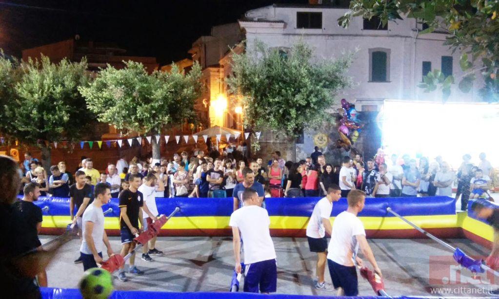 Una partita un pò particolare ha animato ieri sera il borgo di Moscufo e precisamente piazza Garibaldi dove è appunto approdato il "Torneo calcio balilla umano".