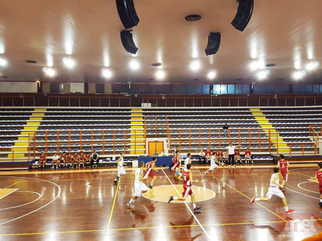 Il primo quarto si conclude sul punteggio di 23-9 per i locali. Nel secondo quarto l'Amatori dilaga e i ragazzi guidati da coach Bartoccini prendono il volo; al 6-67' l'Amatori conduce già per 32-11, con lo Spoltore che fatica a trovare spazi e soffre la pressione dei padroni di casa; i primi due canestri arrivano infatti dopo 3 minuti di gioco, intorno al 7' minuto. Si va all'intervallo lungo con l'Amatori avanti per 40-16.