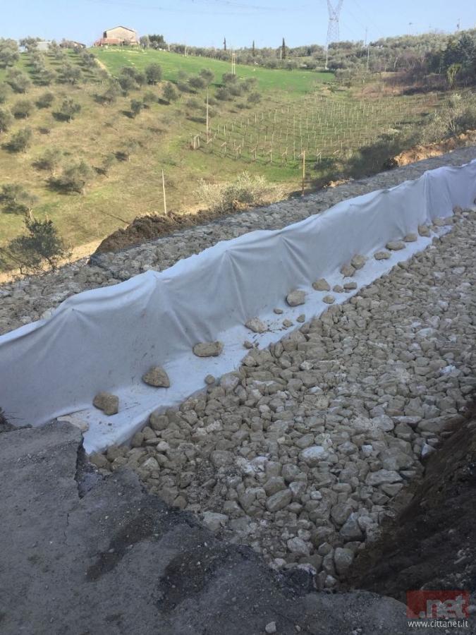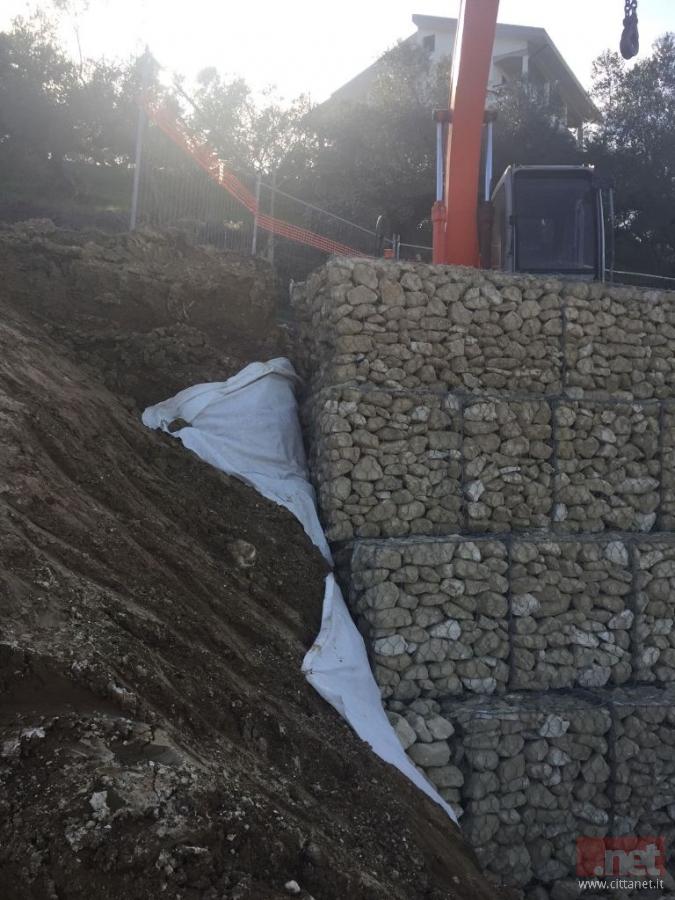 Nello specifico il primo tratto vedrà il posizionamento di gabbioni per una altezza di circa 4,00 metri e larghezza di 3,00 metri, il secondo con gabbioni di 5,00 metri di altezza e 3,00 metri di larghezza circa. In sommità sarà realizzato un cordolo .A consolidamento avvenuto, si procederà al ripristino della sede stradale originaria".