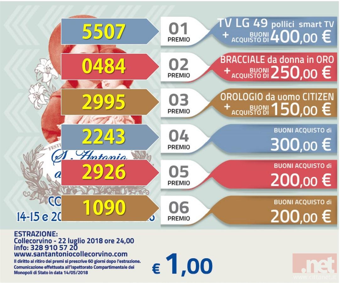 Collecorvino: numeri vincenti lotteria Sant’Antonio di Padova