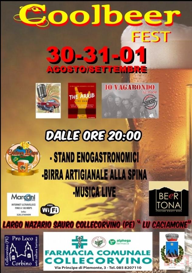 Dopo il successo della prima edizione si ripete a Collecorvino dal 30 Agosto al 01 Settembre, COOLBEER FEST, la manifestazione che oltre a segnare la fine dell’estate celebrerà le birre artigianali che vengono prodotte nella regione Abruzzo, nello specifico nella provincia di Pescara.