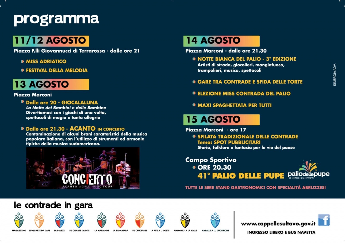 - ore 20.30 campo sportivo 41° Palio delle Pupe.