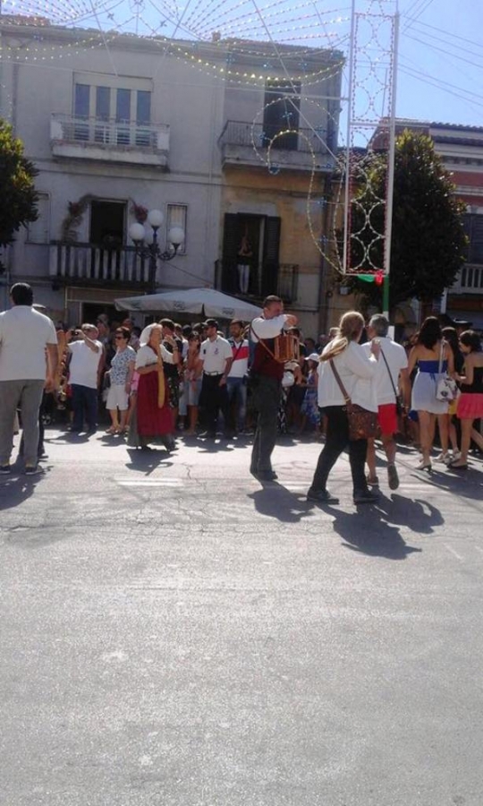 Suonatori e cittadini radunati tutti insieme al suon di musica e canti popolari, si sono scambiati voti augurali per la giornata di festa. La tradizionale sfilata dei carri, è ancora possibile grazie all'ingegno dalle contrade che danno vita a scene agricole e di vita del passato.